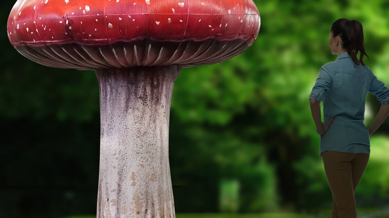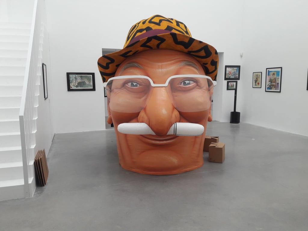 Specificity : Sculpture hidden under a large hat.
